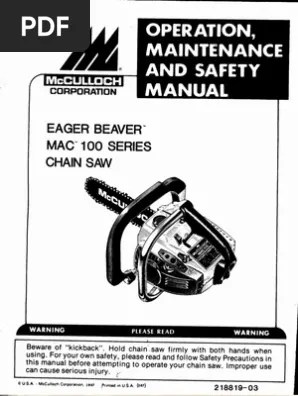 I just got an eager beaver; *free* shipping on qualifying offers. This compact and lightweight chainsaw is versatile, . Eager beaver mcc1840b chainsaw pdf manual download. Mcculloch eager beaver mac 100 series chain saw, operator manual, maintenance, safety, user guide on amazon.com.